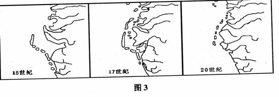 读某大陆海岸变迁示意图(图3),回答8―9题。