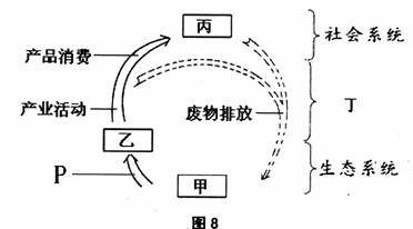 读“环境、资源和人口关系示意图(图)8",回答19~20题。