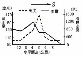 下图是“我国某山地在一定高度范围内南北坡年降水量随高度变化示意图”,读图回答4―6题。