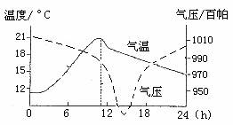 某气象站测得本站某日气温或气压的变化如下图,完成10―12问题。