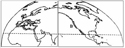 (2)该气候在A处分布面积比B处大的原因是_ ▲ _。(3分)
