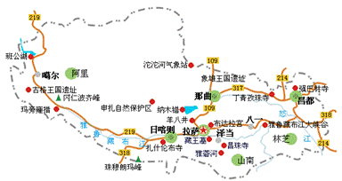 30、西藏自治区位于我国的西南边陲,拥有良好的旅游资源。结合下图,完成下列要求:(10分)