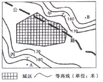14、图中甲、乙、丙、丁四处最适宜建自来水厂的是
