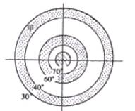 读以北极为中心的地球部分示意图(阴影部分为气压带),完成16―17题。