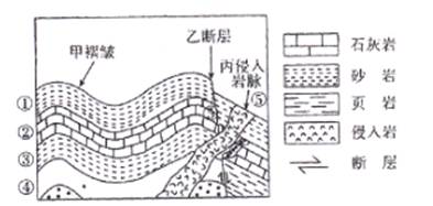 下图为某处地层未曾倒置的地质剖面图,其中①至④代表不同岩层。据此回答21―23题。