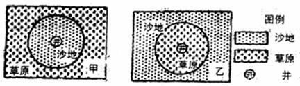 下图为我国西部内陆地区两地景观示意图,读图完成5―6题。