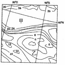 下图为我国西部某区域7月均温(℃)等值线图,读图回答12―13题。