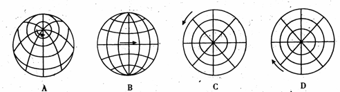 15..若某人在乙处观察,此人所见的经纬网为下图中的( )