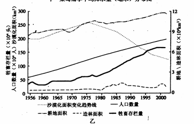 ⑶.读图乙,描述近50年图示岛屿西部沙漠化面积的变化特点。