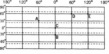 (2)如果一架飞机从B点上空于地方时12:00出发向北飞行,3小时后到达C点上空。飞机飞行距离约( )