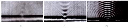 16.(4分)在研究机械波发生衍射现象的试验中,保持窄缝的宽度不变,改变水波的波长,进行了三次实验,观察到的现象依次如下列甲、乙、丙三图所示。则,第 次实验中使用的水波波长最长。