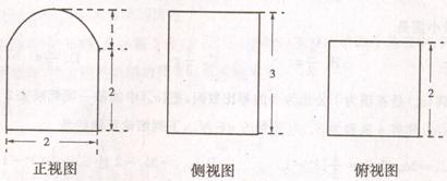 16、已知某个几何体的三视图如图(正视图中弧线为半圆),根据图中标出的尺寸(单位:cm),可得这个几何体的体积为_____________cm3。