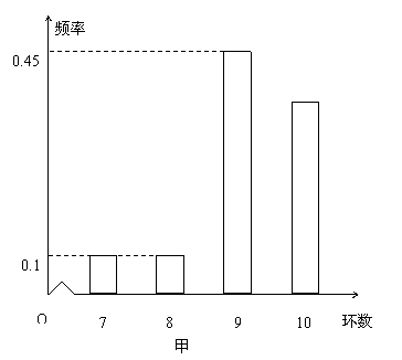 甲、乙两运动员进行射击训练,已知他们击中的环数都稳定在7,8,9,10环,且每次射击成绩互不影响.根据以往的统计数据, 甲、乙射击环数的频率分布条形图如下: