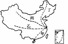 家住上海的王小华利用暑假期间游览祖国的大好河山,他设计的游览线路如图所示。据此回答17-18题:
