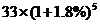>33(1+0.09+0.00324+……)=36.07692>36(万元)