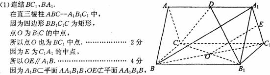所以OE//平面AA1B1B……………………………………………………………14分
