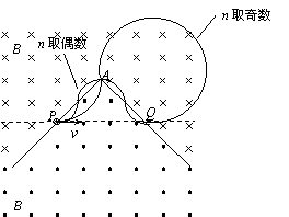 ⑶当n取奇数时,微粒从P到Q过程中圆心角的总和为