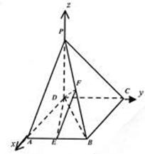 解法二:以DA,DC,DP所在直线分别为x轴,y轴,z轴建立空间直角坐标系(如图)。