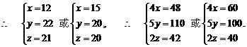 解:设商场分配给超市部、服装部、家电部的营业额依次为