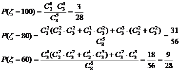 (2)ξ的取值为100,80,60,40.…………………………………4分