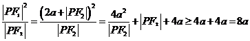 时上式取等号,这时|PF1|=4a,由|PF1|+|PF2|≥|F1F2|,得6a≥2c,故1<e=![]()