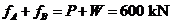 已知:fB=2fA 求得:fA=200 kN fB=400 kN