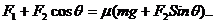 (1)式应改为:Fcosβ+F=mgsinα ②
