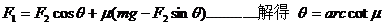 综上所述,当力F2与F1在同一竖直平面内,力F2的方向与力F1的夹角为arccotu或![]()