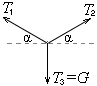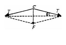 的夹角为θ,如图所示。依对称性有:T1=T2=T 由力的合成有 :
