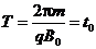 后半周期粒子受磁场作用做匀速圆周运动,周期为T