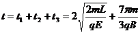 设带电粒子在磁场中运动时间为t1,在电场中运动的时间为t2,总时间为t。