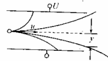 时,电子不能穿越极板,中途就落到上板或下板上。如图39所示。