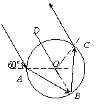 由几何关系知,光线在球体的竖直表面上的入射角γ(见图26)为30°。由折射定律得![]()