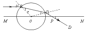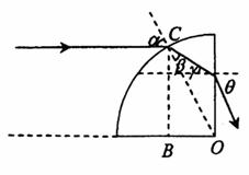 入射点的法线。因此,图中的角α为入射角。过C点作球体水平表面的垂线,垂足为B。依题意,∠COB=α。又由△OBC知sinα=