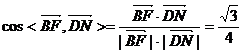 ∴∠DNM或其补角为DN与BF所成角。