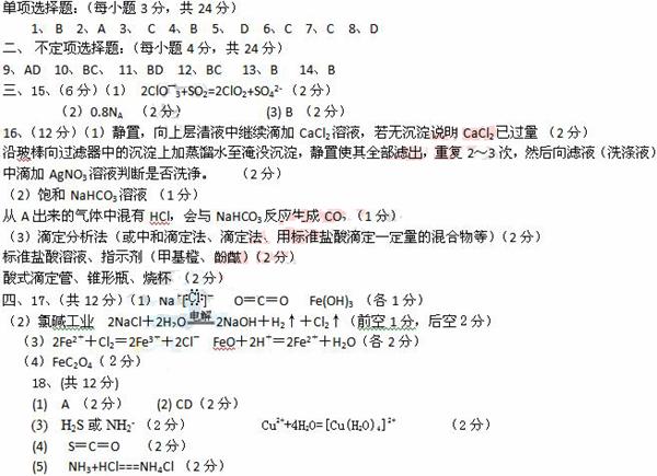 (3)由于HF中含有以氢键相结合的聚合氟化氢分子(HF)n (3分),(其它合理答案参考给分)