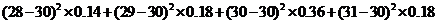 甲 =28×0.14+29×0.18+30×0.36+31×0.18+32×0.14=30