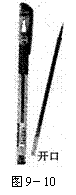 (1)如图9―10所示的水笔芯,当上端开口堵住后书写了一会儿,笔尖就无法写出字了。发生这种现象的主要原因是 。