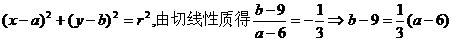 抛物线在A处的切线斜率y′=3,设圆的方程为