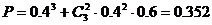 =0×0.216+1×0.432+2×0.288+3×0.064=1.2.…………10分