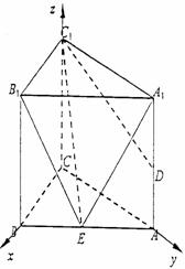 法二:以C为坐标原点,CB,CA,CC1分别为x轴,y轴,z轴建立空间直角坐标系,则A(0,2,0),B(2,0,0),C1(0,0,2),D(0,2,1),∴
