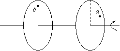 b:如图装置,用两个相同的圆纸片通过转轴绕轴转动,用秒表测量出其转动的周期T;然后让子弹水平穿过转动的两纸片,在上面留下如图的a、b两小孔,用量角器测量出两小孔所在半径的交角