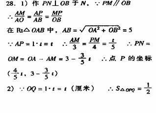 所以BP=OB-OP=OB-CQ=20t,CP=OQ=OA-AQ=160-20t,