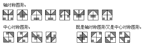 22.所画的两个图案中,有一个图案只是轴对称(或只是中心对称)的给4分,另一个图案既是轴对称图形又是中心对称图形的给6分.答案不唯一,以下设计图案仅供参考.