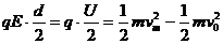 ⑶粒子在极板间作类平抛运动。刚能从右上角飞出时,有速度vm。设飞出所用时间为t,此时对应的电压为U。依图得: