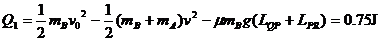 (2)B在A的圆弧部分的运动过程中,它们之间因摩擦产生的内能为Q1,B在A的水平部分往返的运动过程中,它们之间因摩擦产生的内能为Q2,由能量关系得到