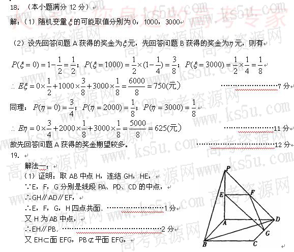 ∴PB∥平面EFG. …………………………………………………………………… 3分