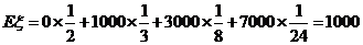 (II) 设幸运观众按A→B→C顺序回答问题所得奖金数为随机变量ξ,则ξ的取值可以为0元、1000元、3000元和7000元,其分布列为