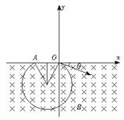 16.解:(1)带负电粒子射入磁场后,由于受到洛伦兹力的作用,粒子将沿图示的轨迹运动,从A点射出磁场,设O、A间的距离为L,射出时速度的大小仍为v,射出方向与x轴的夹角仍为θ,由洛伦兹力公式和牛顿定律可得: