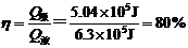 (2)Q放=Pt=1500W×7×60s=6.3×105J …………………………1分